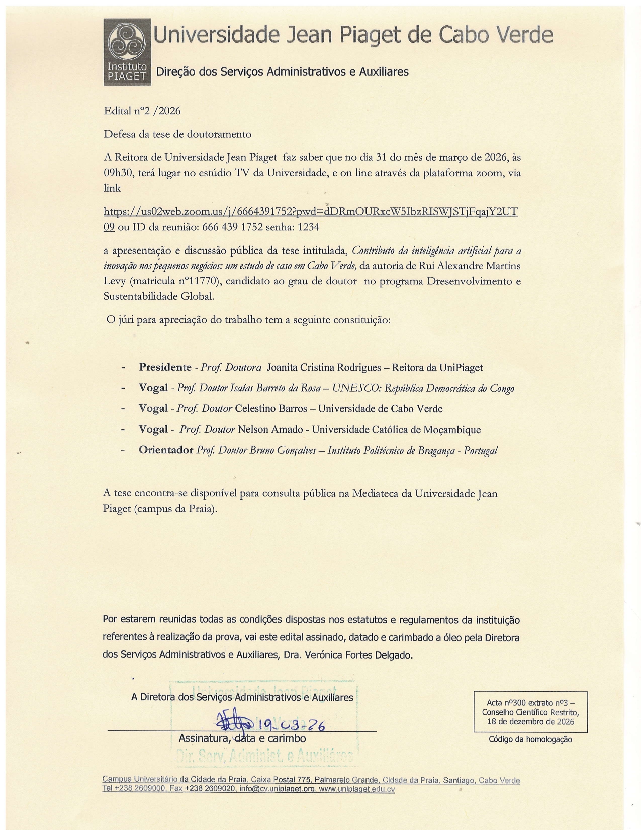 On March 31, 2026, at 9:30 AM, the second public doctoral defense will take place, this time with the presentation of Rui Alexandre Martins Levy's thesis, entitled: