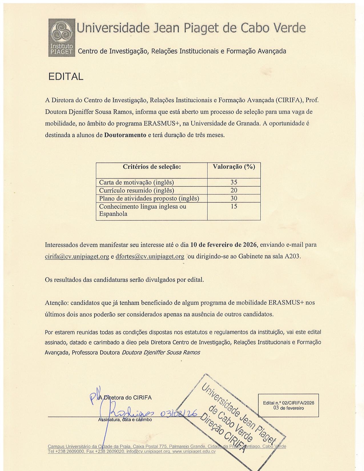 Applications until February 10, 2026cirifa@cv.unipiaget.org | dfortes@cv.unipiaget.org